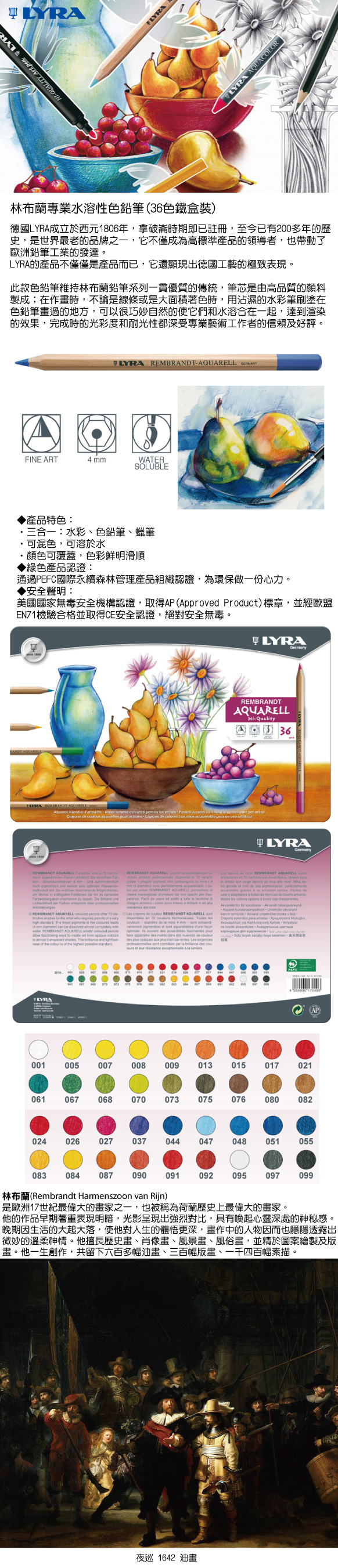 >【德國LYRA】林布蘭專業水溶性色鉛筆(36色鐵盒裝) / 盒