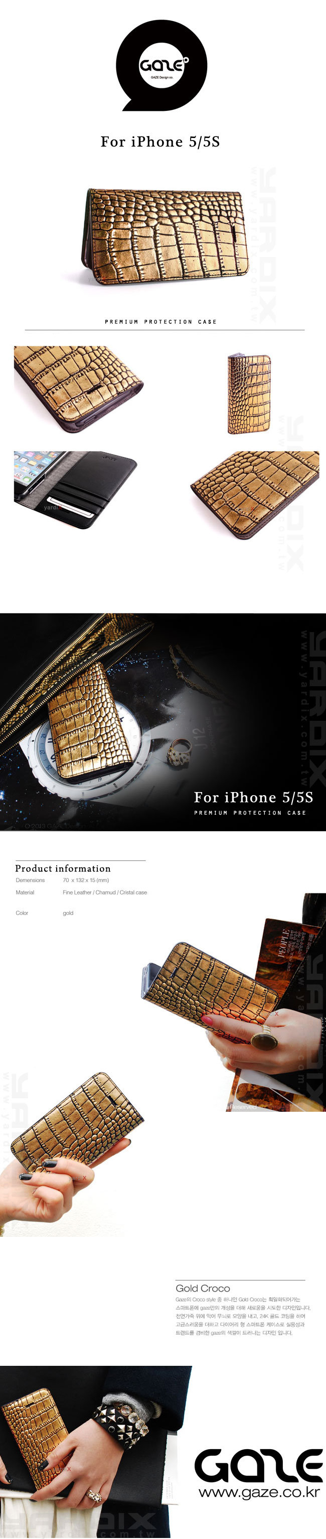 【韓國潮牌Gaze Gold Croco iPhone 5/5S金漆鱷紋手工真皮保護套】