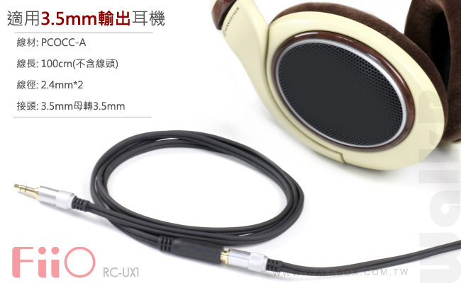 FiiO RC-UX1是3.5mm音源輸出的耳機都可使用的耳機100cm延長線。