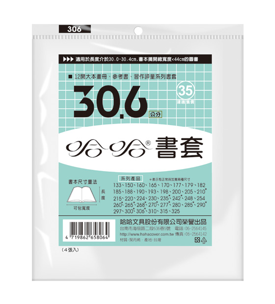◎ 品 名:哈哈書套 BC306 傳統塑膠PP書套 30.6 x 44.5cm 12開大本畫冊.參考書.