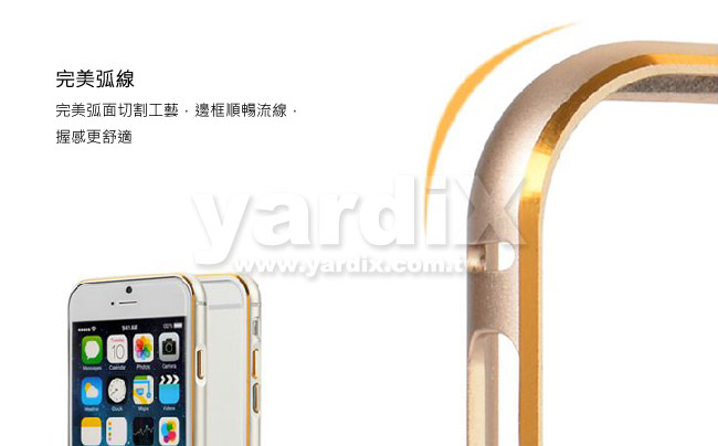 航空鋁合金材質製造,僅8.5g的輕巧不添增iPhone過多重量,也不會因增加邊框而感到難以握持操控手機,側邊設有突起按鈕鍵,讓按鈕更好按,造型簡單大方,觸摸質感細膩平滑不粗糙,內裏設有吸震襯墊,機身與金屬不碰撞磨擦。