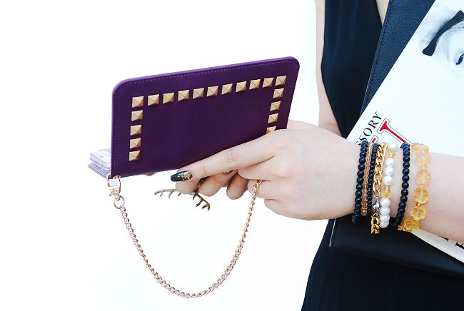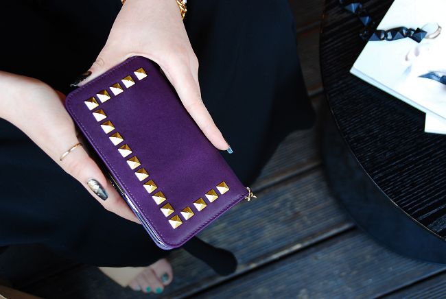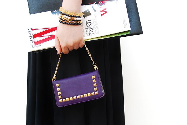 韓國潮牌Gaze Glitter Square Purple iPhone 6 4.7"手工鉚釘真皮保護套