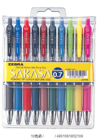 商品名稱:ZEBRA 斑馬 JJB3 SARASA 鋼珠筆0.7mm -10色入 / 袋