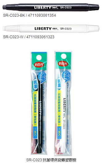 商品名稱:利百代 SR-C023 抗菌環保旋轉塑膠擦 (橡皮擦) -10袋 (支) / 小盒
