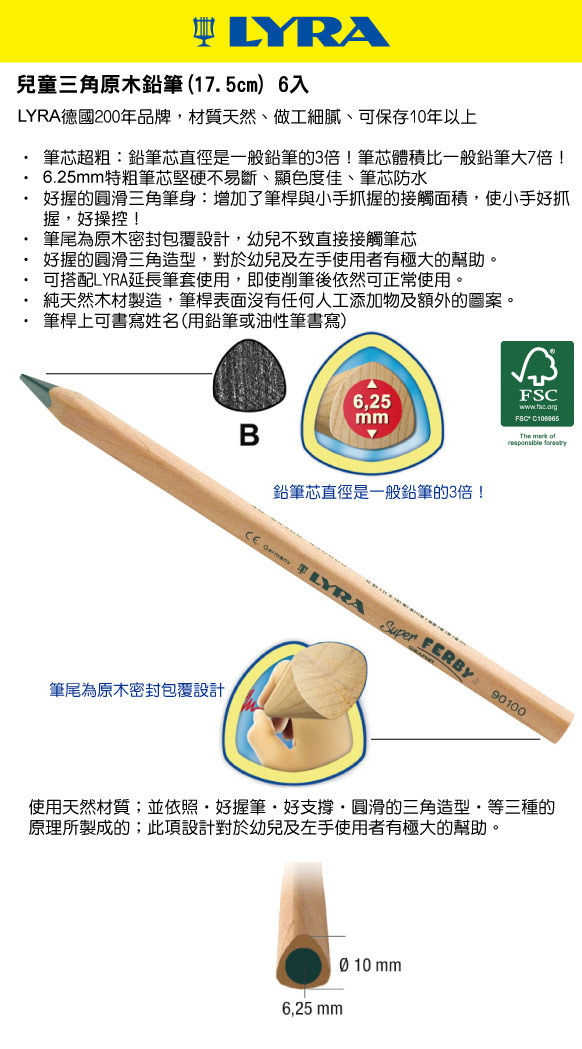 >【德國LYRA】兒童三角原木鉛筆(17.5cm) 6入 / 盒