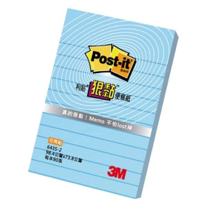 【3M】643S-2 利貼 狠黏 可再貼便條紙(橫格系列) 粉藍 90張/本