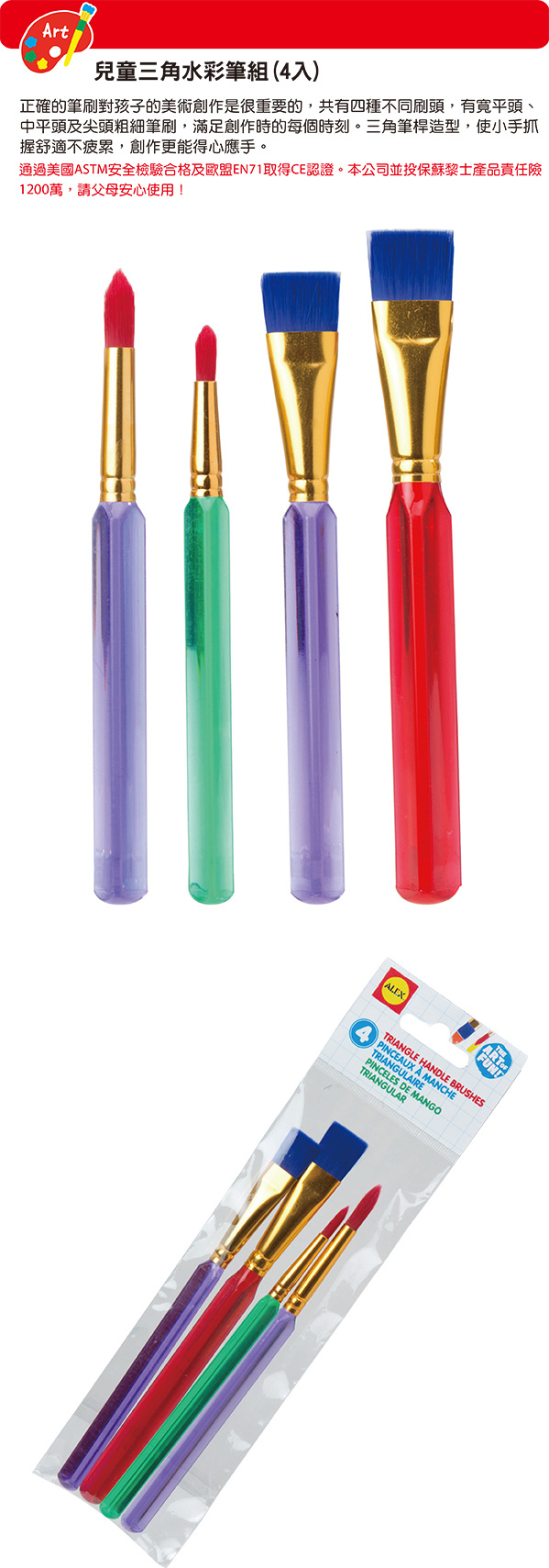 >【美國ALEX】兒童三角水彩筆組(4入) / 袋