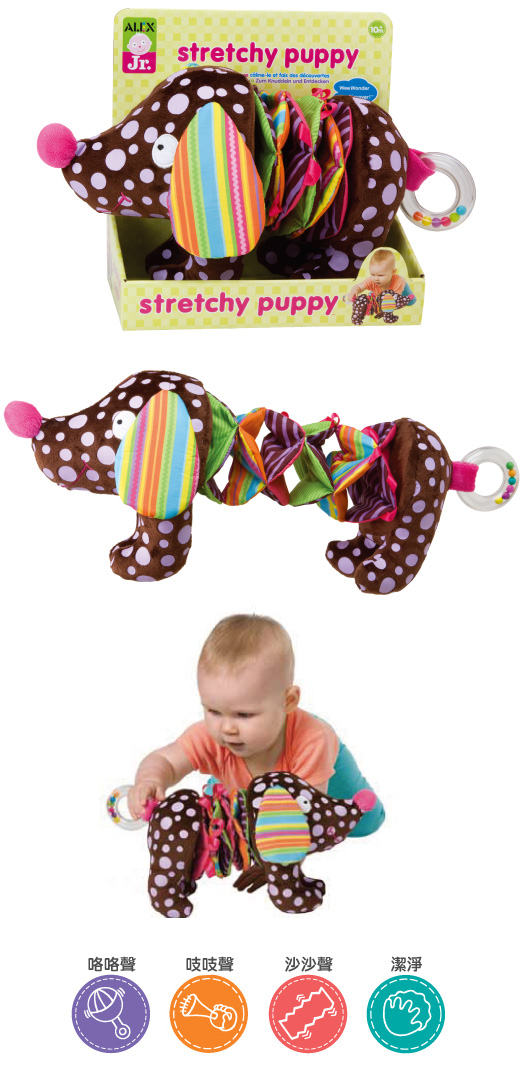 小狗的身體可以拉長,利用拉扯和扭動技巧,訓練孩子的手部肌肉運動及手眼協調。