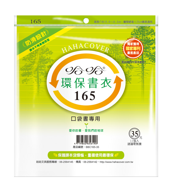 ◎ 品 名:哈哈書套 BBC165 環保書衣 16.5 x 25cm 口袋書專用 -12張入 / 包