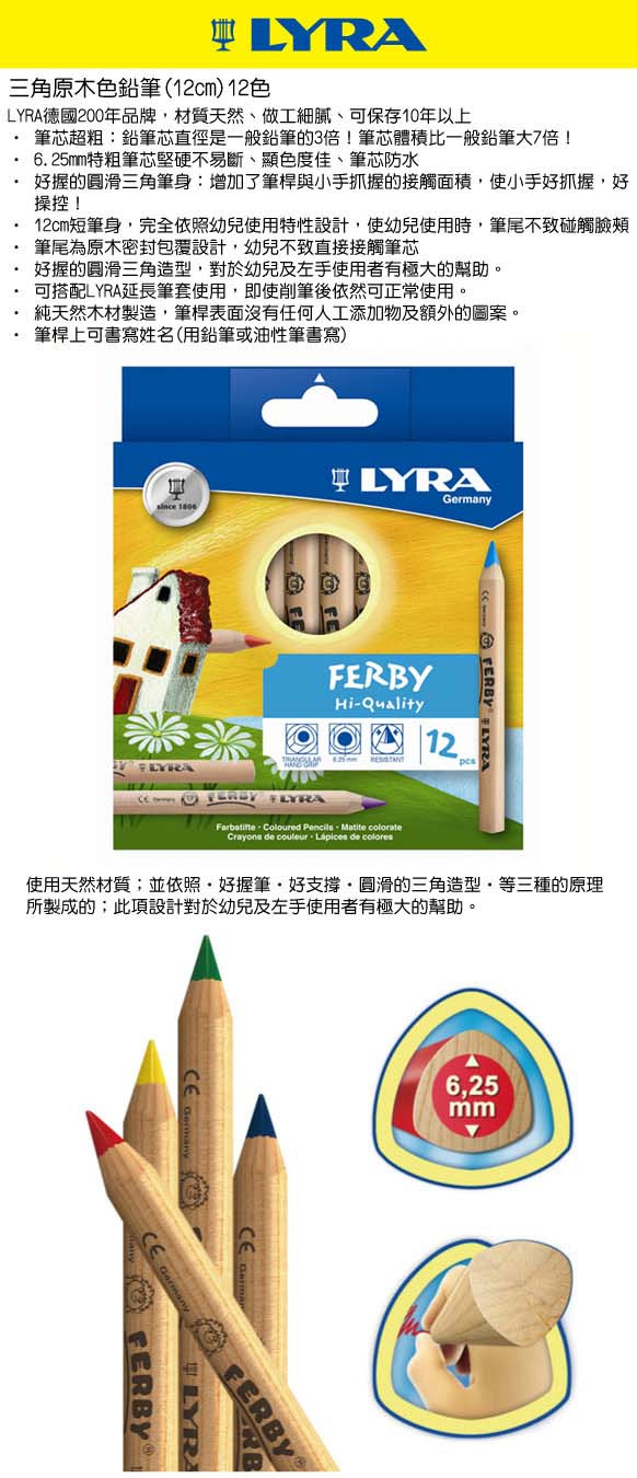 >【德國LYRA】三角原木色鉛筆(12cm)12色 / 盒