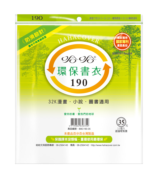 ◎ 品 名:哈哈書套 BBC190 環保書衣 19.3 x 28.5cm 32K漫畫.小說.圖書適用