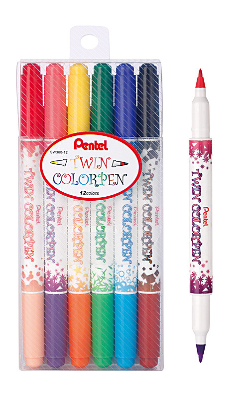 商品名稱:Pentel 飛龍 SW380-12 雙色水性筆 - 12色入 / 盒