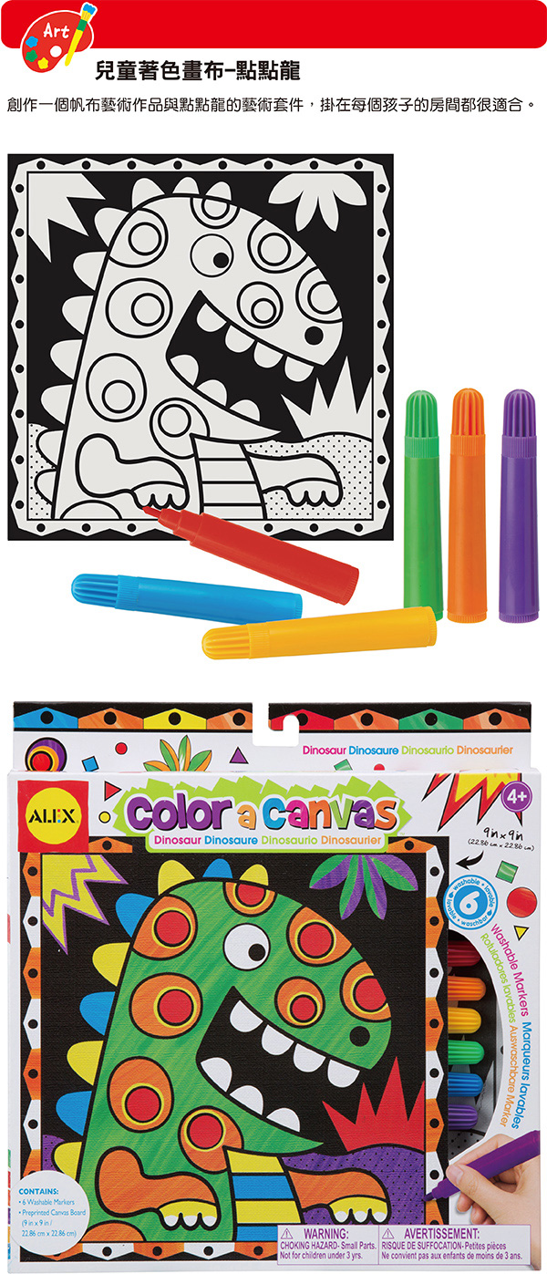>【美國ALEX】兒童著色畫布-點點龍 / 盒