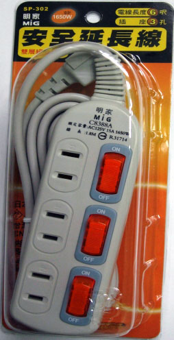 明家 SP-302 3開3插家用安全延長線6呎/ 條
