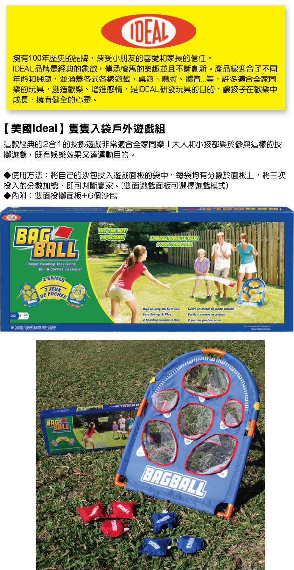 ◆使用方法:將自己的沙包投入遊戲面板的袋中,每袋均有分數於面板上,將三次投