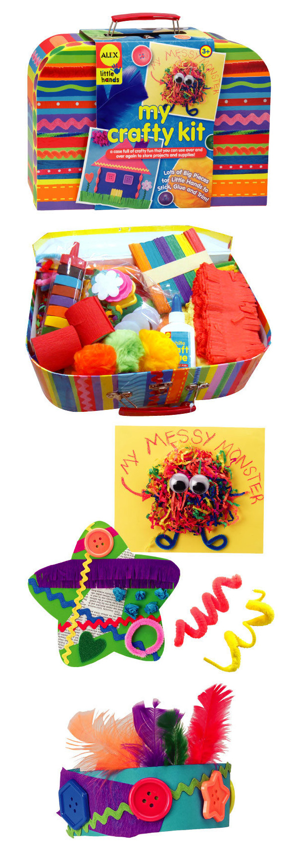 工具箱內有式各樣裝飾材料~小朋友自己黏貼,做可愛的卡片和裝飾!工具箱可以提著走,當一般小提箱喔!