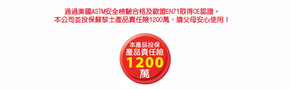 .本公司投保蘇黎士產品責任險1200萬,請父母安心使用!