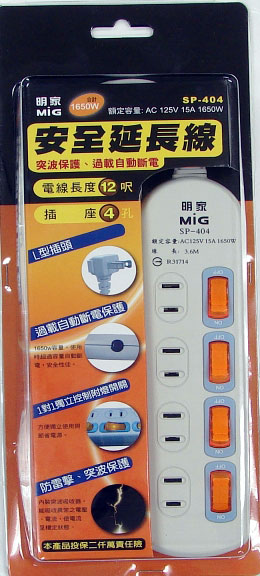 明家 SP-404 4開4插家用安全延長線6呎/ 條