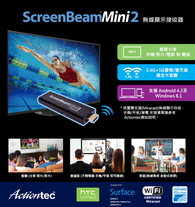yardiX代理【Actiontec ScreenBeam Mini 2 無線顯示接收器】