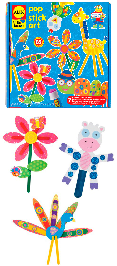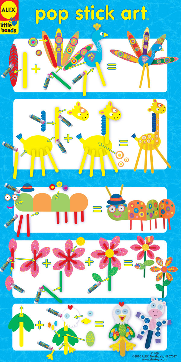 有貼紙、木棍、幼兒口紅膠、不需剪裁的動物紙片,只需用口紅膠黏貼即可完成,並附彩色說明書。
