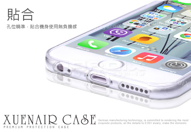 不像一般坊間的清水保護殼作工粗糙又厚,而Xuenair推出iPhone 6超薄矽膠保護殼,使用航空聚酯材質,厚度僅0.5mm,貼合手感無負擔。