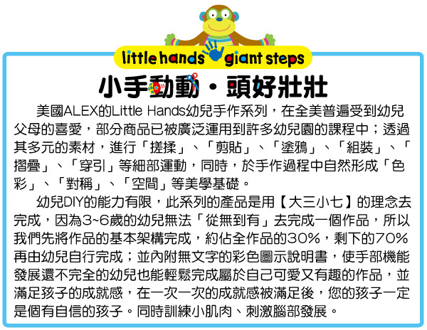 一組可做3個動物好朋友!孩子可輕鬆完成3D立體的小熊、蝴蝶和鱷魚! 共三隻動物!內有口紅膠、色紙...等完整的材料包,不需剪裁。並附簡易的圖片說明書。