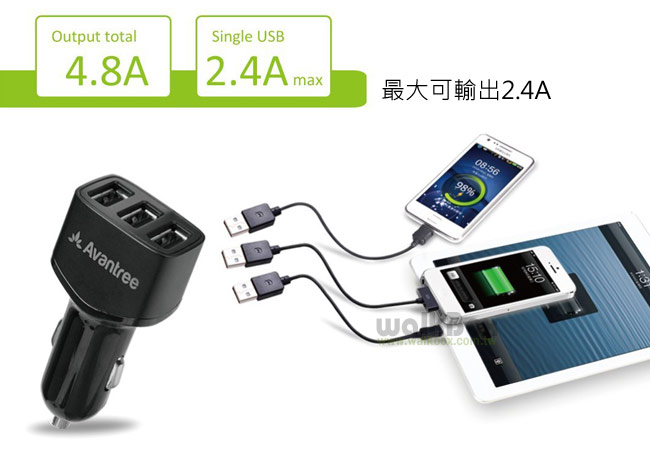電流:4.8A(單個USB最大2.4A,3個USB共4.8Amp)