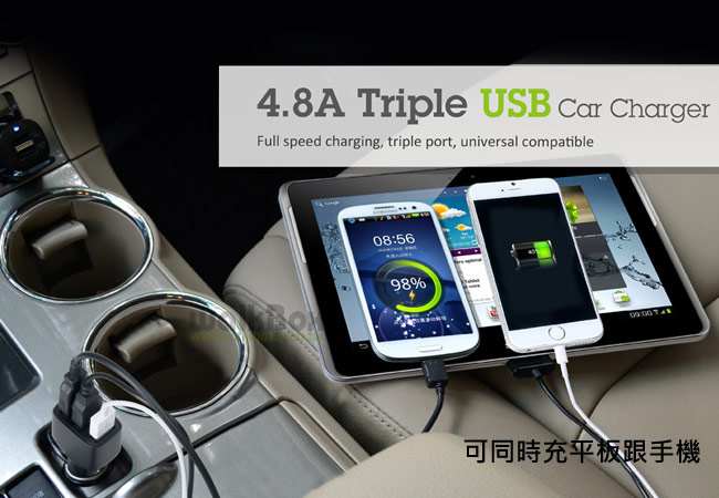現在的隨身電子產品越來越多,但耗電量越來越大,光憑單一車充接孔實在不夠用,接車充擴充器又太麻煩又占空間,5V4.8A高功率輸出,在短程的車程中,讓充電更快速。