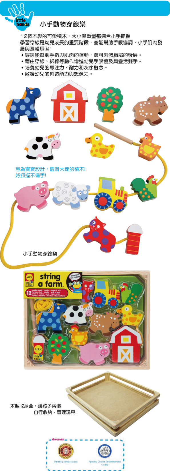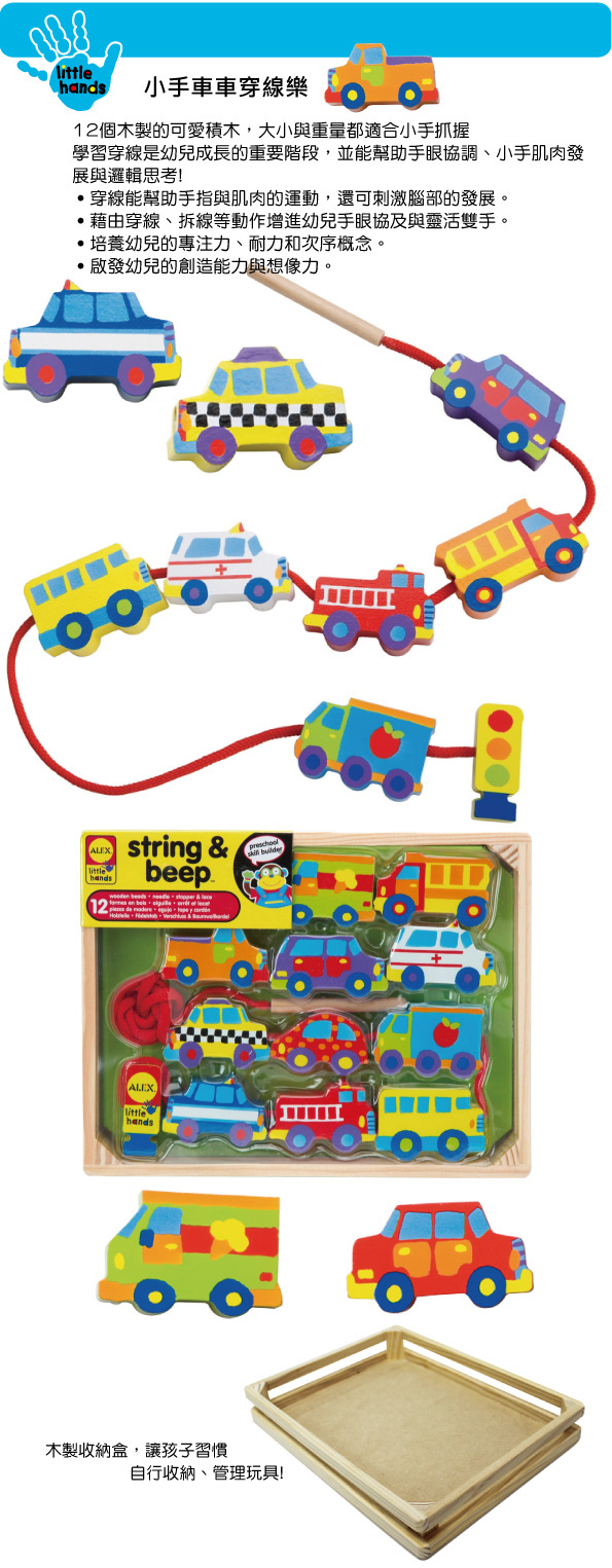 >【【美國ALEX】小手穿線樂-點心/動物/車車 / 盒