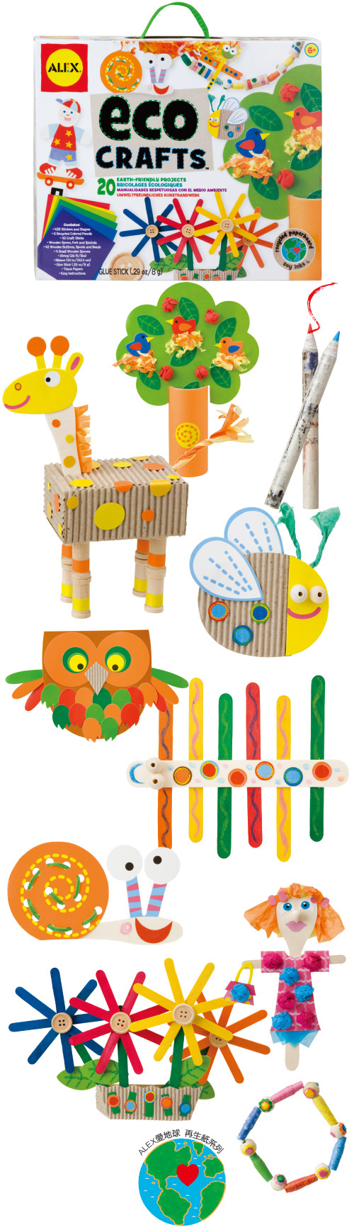 用環保的再生紙材料製作出的貼紙、紙和鉛筆~孩子可創造20樣對地球友善的作品!