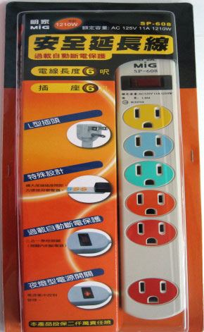 明家 SP-608 1開6插電腦延長線6呎(彩色插座) / 條