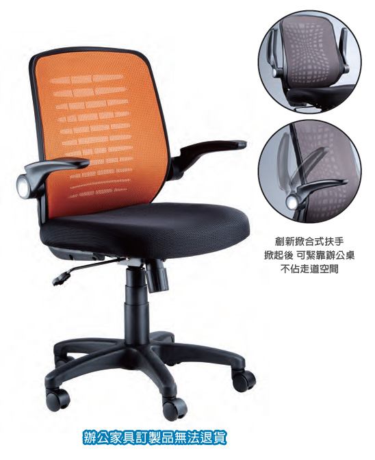 ◎特色:創新掀合式扶手,掀起後可緊靠辦公桌,不佔走道空間