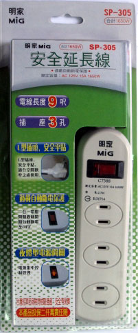 明家 SP-305 1開3插家用安全延長線9呎/ 條