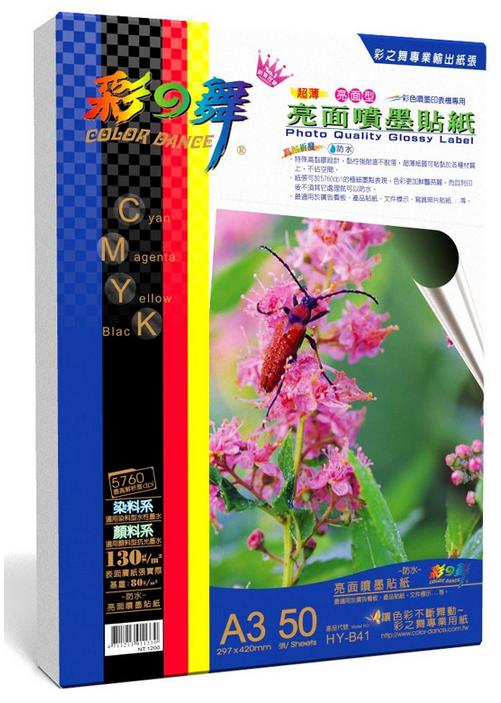 特殊高黏膠設計,黏性強耐溫不脫落,超薄紙質可貼黏於各種材質上,不佔空間。紙張可於5760dpi的極細墨點表現,色彩更加鮮豔亮麗,而且列印後不需其他處理就可以防水。最適用於廣告看板、產品貼紙、文件標示、寫真照片貼紙…等。