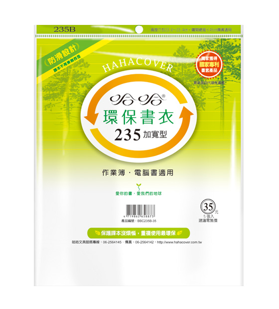 ◎ 品 名:哈哈書套 BBC235B 加寬型 環保書衣 23.6 x 45cm 作業簿.電腦書適用
