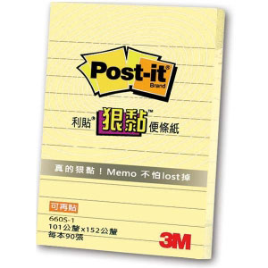 【3M】660S-1 利貼 狠黏 可再貼便條紙(橫格系列) 黃 90張/本