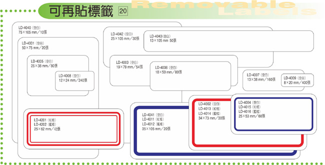 商品名稱:龍德 可再貼標籤 LD-4007 (13x38mm) /包