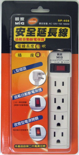 明家 SP-408 1開4插電腦延長線6呎/ 條
