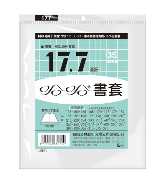◎ 品 名:哈哈書套 BC177 傳統塑膠PP書套 17.7 x 26cm 漫畫.小說適用