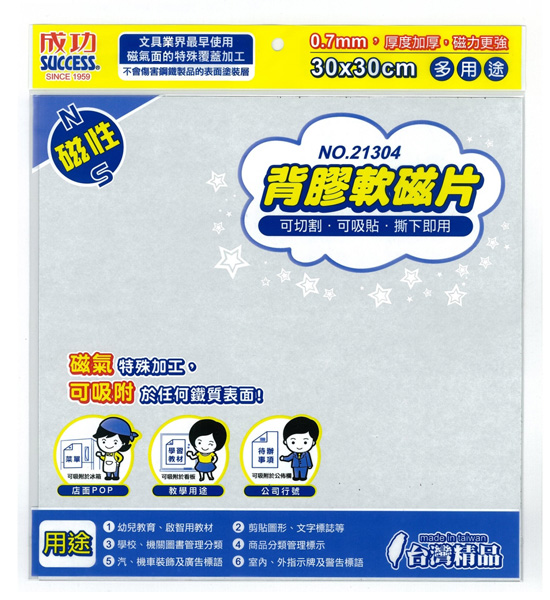 ◎品名:成功 SUCCESS 21304 背膠軟磁片 30x30
