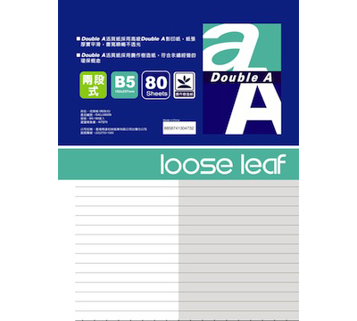 ◆商品名稱:Double A B5 活頁紙-兩段式內頁 80張入/本