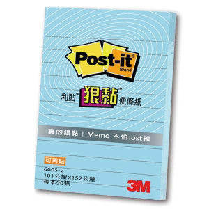【3M】660S-2 利貼 狠黏 可再貼便條紙(橫格系列) 粉藍 90張/本