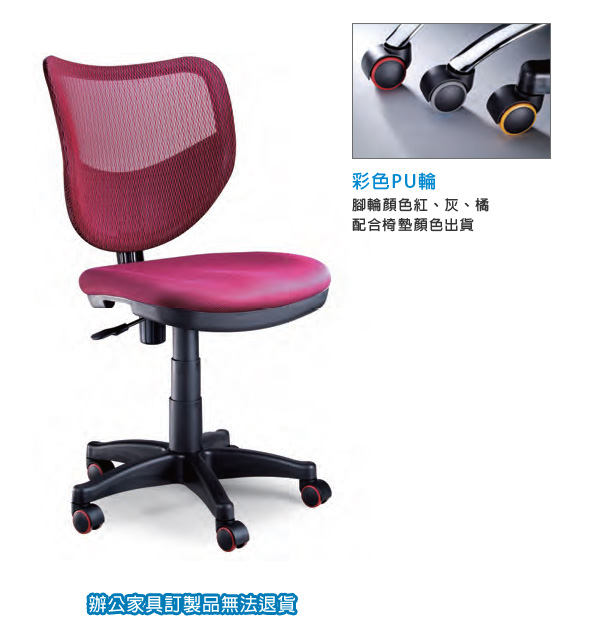 ◎特色:彩色PU輪 -- 腳輪顏色紅、灰、橘( 配合椅墊顏色出貨 )