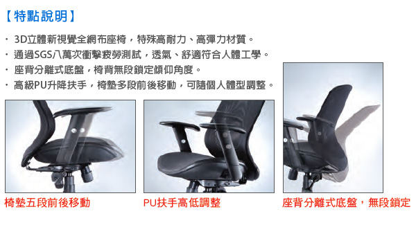 ◎特色:‧ 3D立體新視覺全網布座椅,特殊高耐力、高彈力材質。