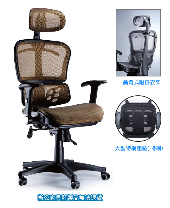 ◎特色:美背式附掛衣架,大型特網座墊( 特網)