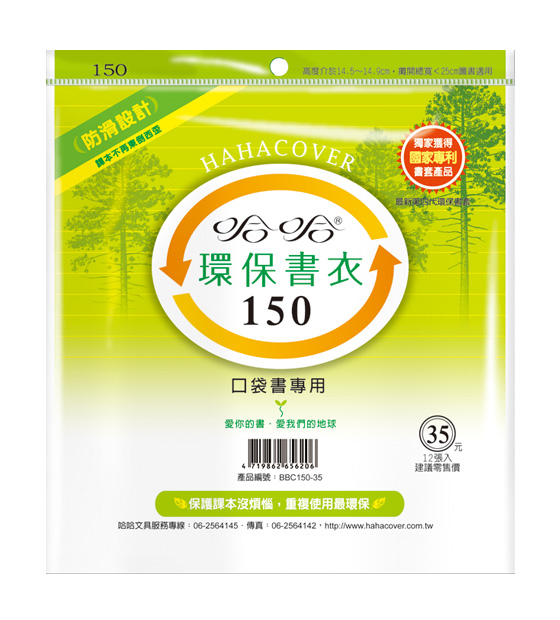 ◎ 品 名:哈哈書套 BBC150 環保書衣 15.1 x 25cm 口袋書專用 -12張入 / 包