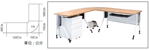 WH-60R 白櫸木紋1/4圓桌:寬70x深70 (Cm)