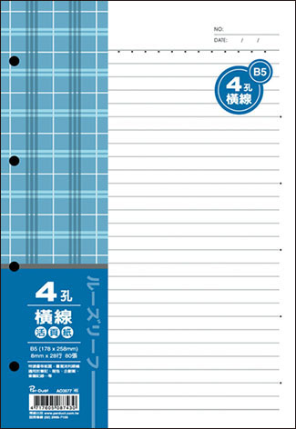 商品名稱:博崴 AO3577 B5 4孔布格紋活頁紙-橫線 -5包入 / 袋商品單位:5包入 / 袋商品型號:AO3577商品規格介紹:◎尺寸:176W x 257H◎入數:80張(包)◎適用於:B5/4孔夾◎橫線:8 mm ruled line廠商代號:ARA責任代號:HYC