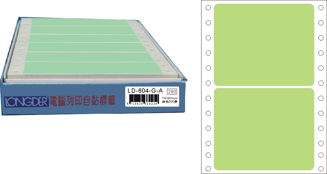 商品名稱:龍德 點陣式電腦連續標籤 LD-604-G-A綠色 (74X90mm) /盒