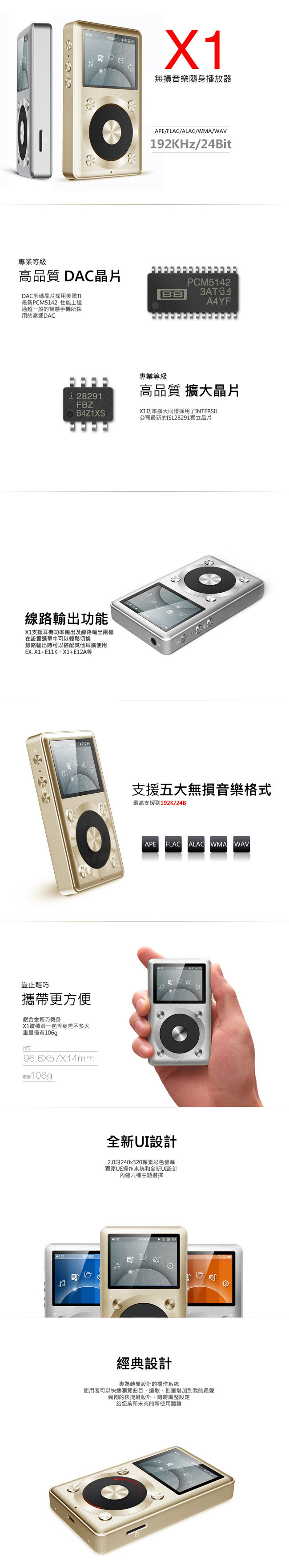 X1支援APE,FLAC,ALAC,WMA,WAV等五大主流無損音樂格式。